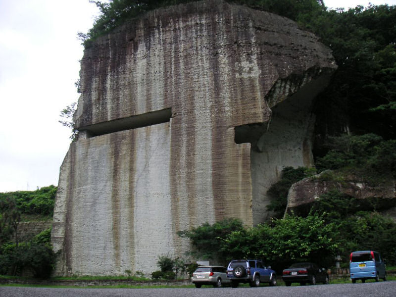 資料館前の大谷石絶壁。 なんとも中途半端な切り出し方。 見ていて崩れないのかなぁと心配になってしまいます。