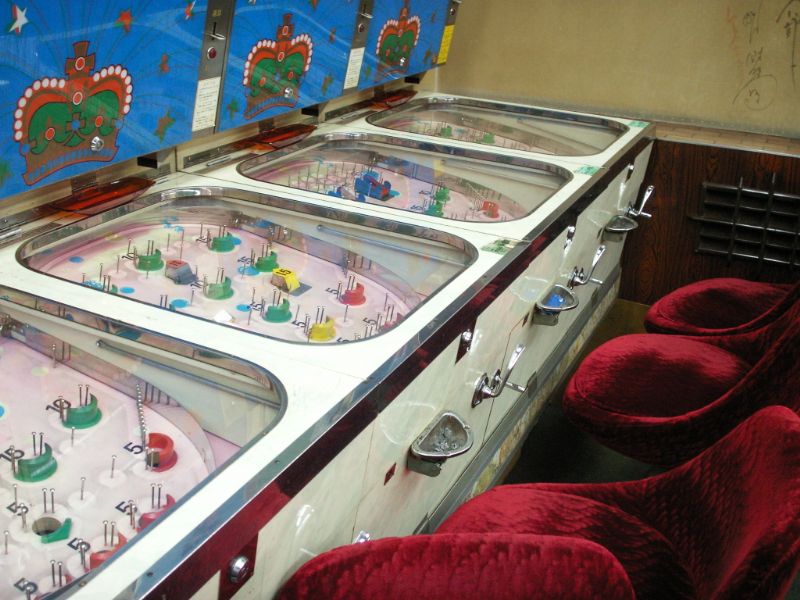 奥のカウンターでコインを買って遊びます。 スマートボールというと棒を手前に引いて玉を出すタイプを思い浮かべますが、ここのはパチンコタイプ。
