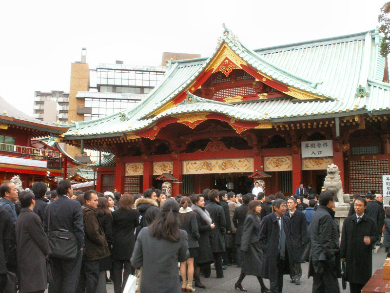 神田明神は何故かサラリーマンと思われるスーツ姿の人がかなり目に付きます。 上の画像でも待っている列はスーツ姿ばっかり。